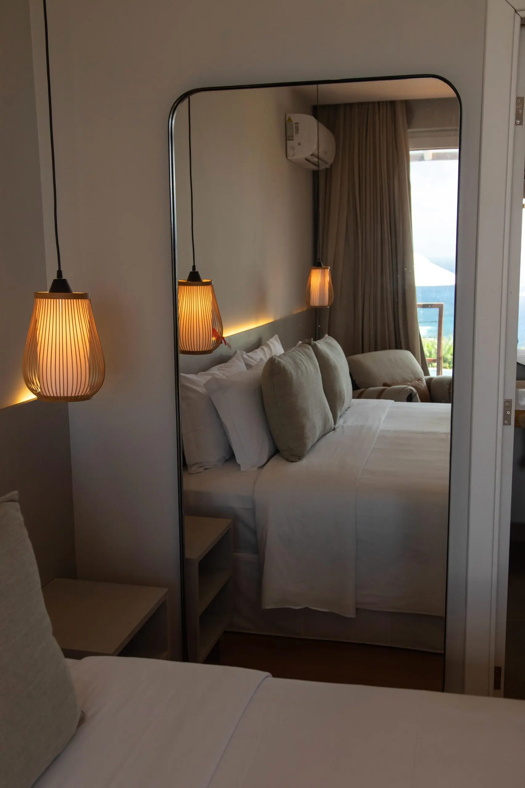 Explore o verdadeiro significado de descanso e relaxamento em nossas amplas suítes com vista para o mar. Pensamos cuidadosamente na arquitetura dos ambientes para que você se mantenha conectado com a natureza o tempo todo.